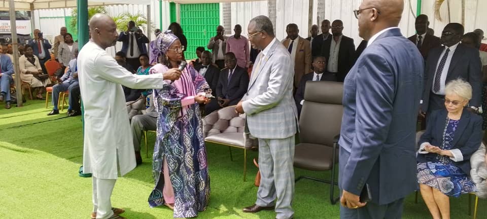 La représentante du PNUD au Congo, ADAMA DIAN BARRY, remettant les contacts du camion frigorifique au ministre congolais de la santé.