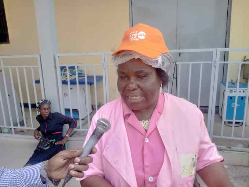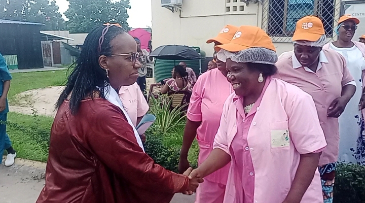 Marie Fanny LOLO saluant la Représentante résidente de l’UNFPA au Congo, Agnès KAYITANKORE lors de la célébration de la journée mondiale de la sage-femme.