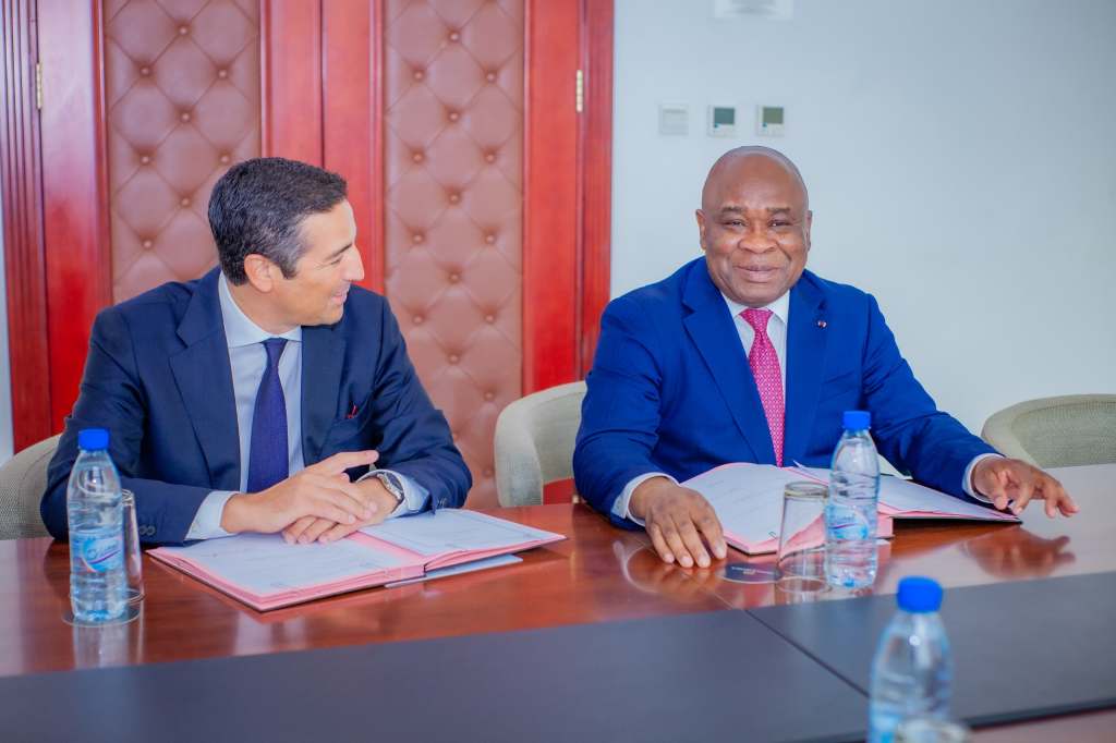 Le Prince Edouard Lamoral et le directeur général de la SNPC, Maixent Raoul Ominga au moment de signer le Protocole d’accord.