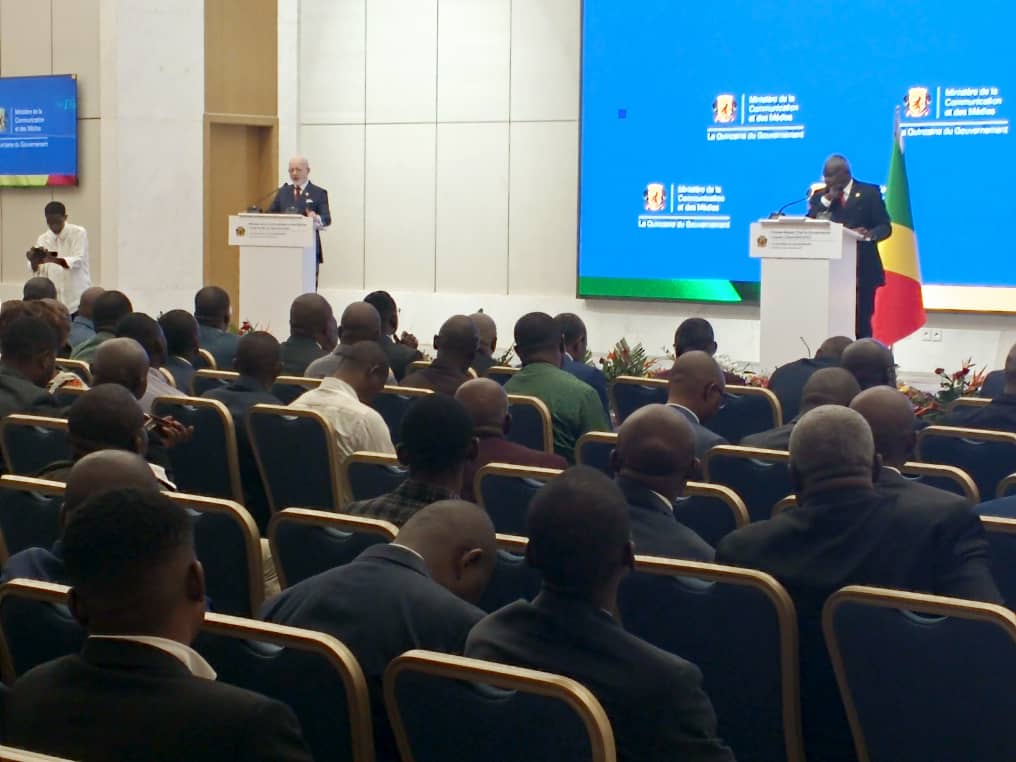 Le Premier ministre, Chef du gouvernement,Anatole Collinet Makosso, devant les professionnels des médias.