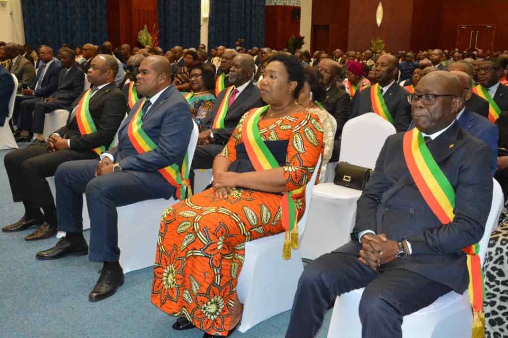 Les sénateurs et le personnel du sénat lors de la cérémonie de présentation de vœux du nouvel an au président de cette institution, Pierre N’Golo.