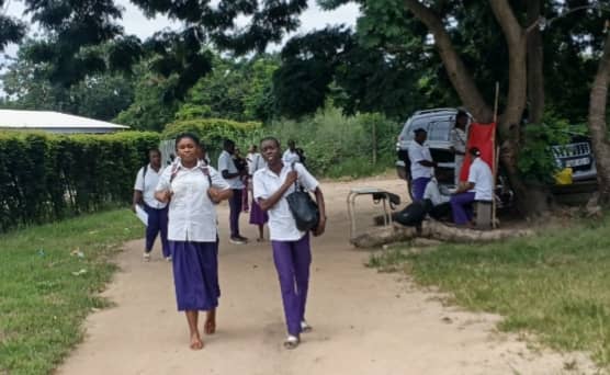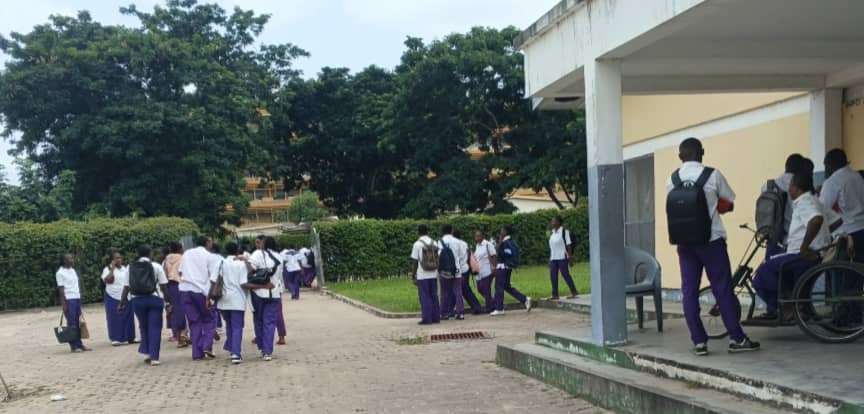 Les élèves de l’école paramédicale de Loukabou en groupe dans l’enceinte de l’établissement..